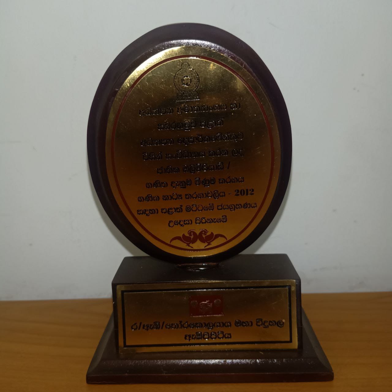 අධ්යාපන අමාත්යංශය හා සබරගමුව අධ්පයාපන දෙපාර්ළාතමේන්ත්තුව විසින් සංවිධානය කරන ලද ජාතික ඔලිම්පියාඩ් ගණිත දැනුම මිනුම තරගය සඳහා පළාත් මට්ටමේ ජයග්රහණ - 2012