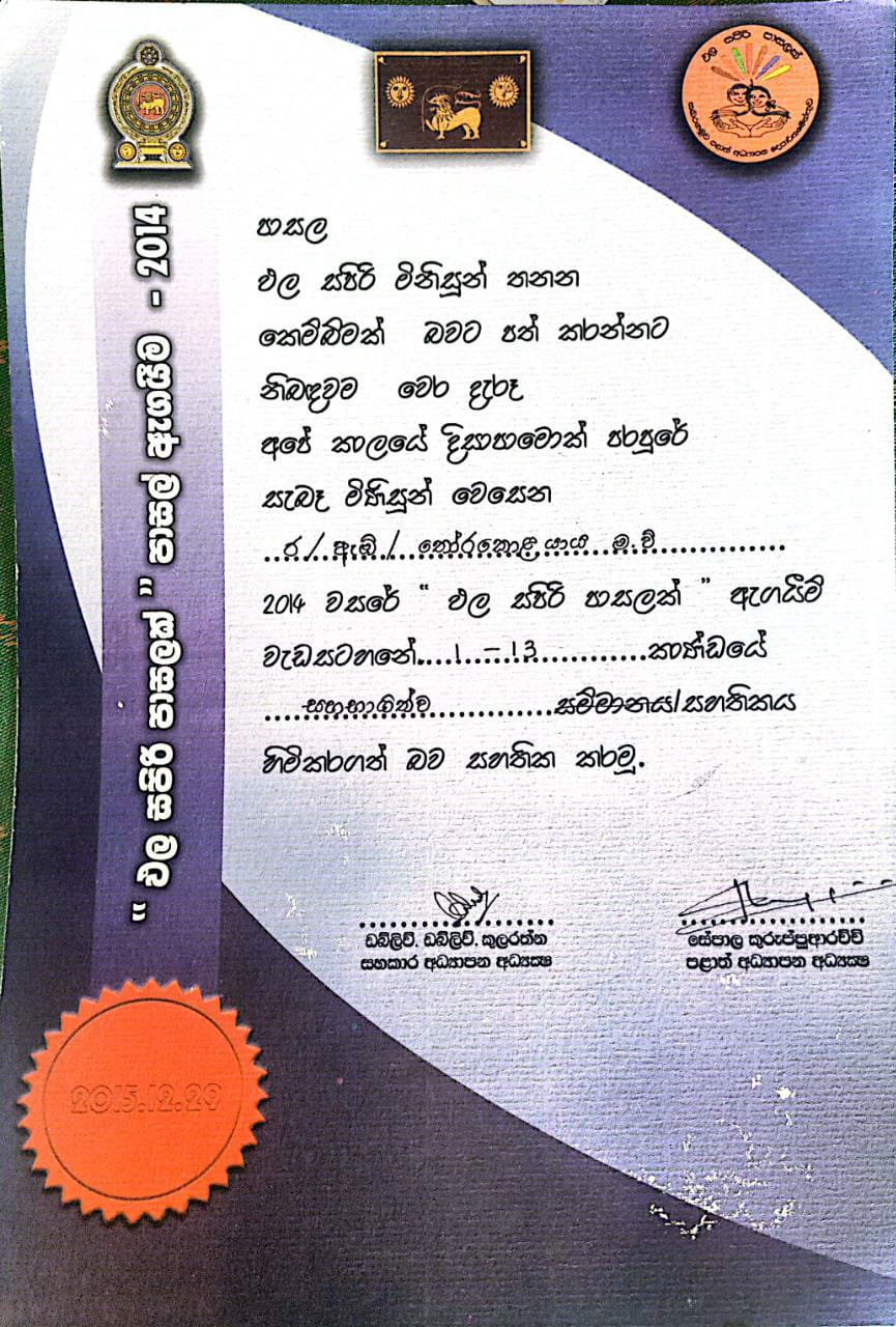 ඵල සපිරි පාසලක් පාසල් ඇගයීම ජ්යෙෂ්ඨ ද්වීතියික පාසල් අංශයේ රජත සම්මාන - 2013